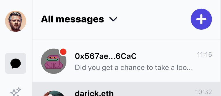 Provide an interoperable inbox UI in your app. This inbox enables your user to access and engage with all of their conversations without leaving your app. An interoperable inbox is the default state of listing conversations. For example, here is an interoperable inbox in the Orb app: